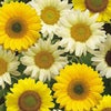 緑芯の3色ミックス。オレンジ、レモン、ホワイトの調和が美しく映える。切り花にも向く。