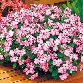 花がピコティ(縁取り)パターンで可愛い。バスケットやプランターで美しく映える。鮮やかな花色が美しい、寄せ植えにも最適。