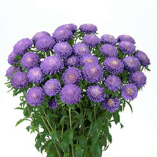 淡い青色。花径5cmほどで、暑い夏でも花もちがよく、お盆の花として人気の品種です。