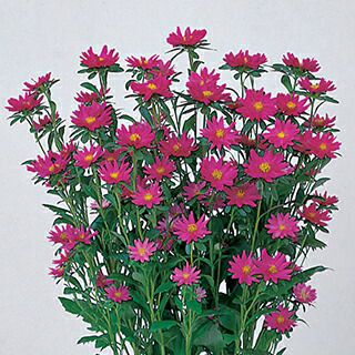 明るい濃桃色。草丈約70~80cm、花径約3cm、半八重のかわいらしい小輪で、立枯病に比較的強くつくりやすい品種です。分枝が多く、切り花や花壇に適しています。