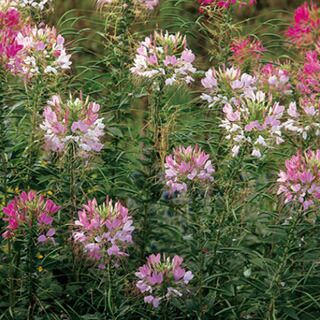 混合種。開花期間が長く、丈夫で育てやすくて花壇によく映える。フウチョウソウ科