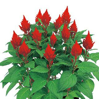 緋赤色のわい性羽毛ケイトウ。