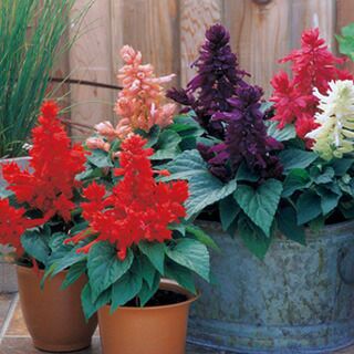 サルビアの一般的なタイプ。緋赤色以外にも多彩な色を楽しめる。すくすく育ち秋まで開花。タネから育てられる人気の草花。