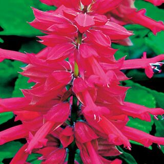 サルビアの一般的なタイプ。緋赤色以外にも多彩な色を楽しめる。すくすく育ち秋まで開花。タネから育てられる人気の草花。