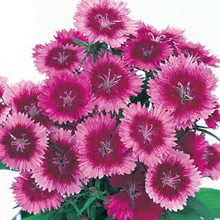 紫色で、花弁中央は濃く、弁縁が淡くなります。一代交配によるわい性ダイアンサスです。四季咲き品種で、株元側枝の発生とその開花が早いのが特徴です。