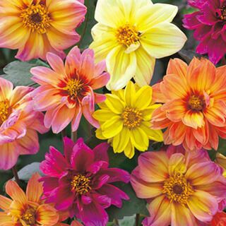 明るい花色で空間が華やぐタネから育てるダリア。苗作りも容易なのでいろいろな場所で利用でき、夏から秋まで長期間楽しめる。