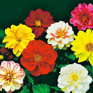 八重咲きの種子系ダリア。透明感ある多彩な花色の混合が楽しめる。