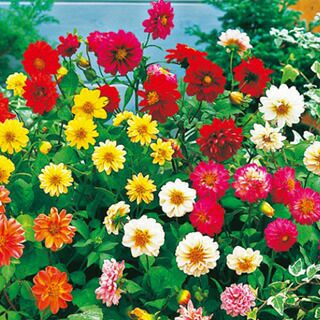 明るい花色で空間が華やぐタネから育てるダリア。苗作りも容易なのでいろいろな場所で利用でき、夏から秋まで長期間楽しめる。草丈低くて、寄せ植えにも使いやすい。キク科
