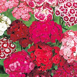 ヒゲナデシコとも呼ばれ、草丈約60cmの切り花に向く高性の品種です。株元から5~8本の枝を伸ばし先端の花房は約10cmの大きさになります。赤、桃、白、蛇の目などの変化に富んだ花色の混合です。