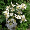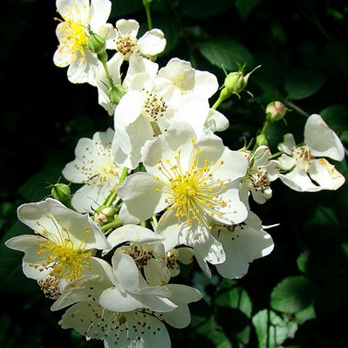 100輪前後の白い小花が円錐花序に咲く。やさしい香りがある。樹勢は大変よくアーチに向く。耐病性・耐寒性・耐暑性に優れる為、多くの交配に利用されている。