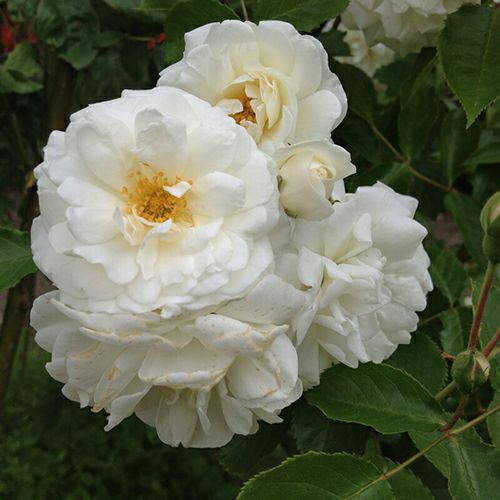 蕾はほんのりピンクが入り可愛らしい。新芽は赤銅色。房咲き性が強く春の花付きはすばらしい。強健で耐病性があり、半日陰でも栽培可能。壁面等やフェンスへの利用は防犯にも効果的。