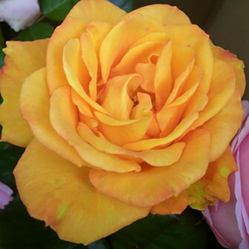 華やかな橙黄で色褪せることなく咲き誇る。糸覆輪が花を引き締め非常に目立つ品種。