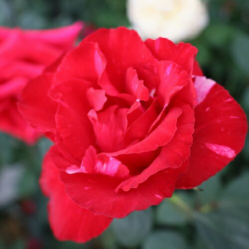朱色で外弁がやや薄い。花保ちが良い。棘はほとんど無いが、樹勢が良いと発生が見られる。切り花品種としても利用可能。