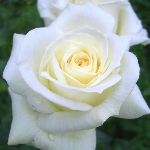 純白色で花形は良く、葉は濃い緑。樹勢が強く耐病性があり栽培しやすい。ドイツ語で「白いダイヤモンド」の意味。