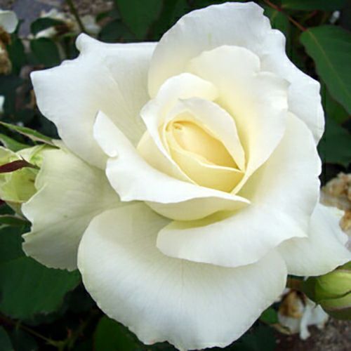 品種名:ホワイトシンフォニー White Symphony系統:ハイブリッドティーローズ 樹高:1.0~1.4m形状:直立性棘:少ない花期:四季咲き花色:白花弁数:約60花径:12~13cm咲き方:剣弁咲き香り:中香作出国:ベルギー作出年:1991作出者:Melle