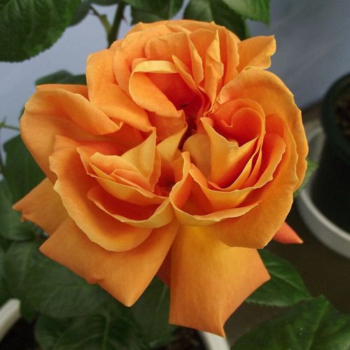 濃いオレンジ色の大輪種で存在感がある。