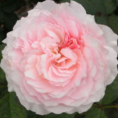 外弁が白で中心がピンクの大輪。葉が大きく半光沢葉で樹勢が強い。美しい花形と濃厚な香りが庭を豪華に演出してくれる。花名は「庭の夢」の意味。