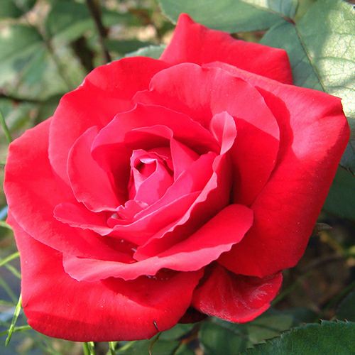 ビロードがかる赤で輝きがある。超多花性で、花壇をいつも楽しませてくれる。葉は光沢葉。耐病性がある。