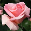 コーラルピンクの中輪種。中輪にしては花が大きく香りが自慢の品種。花壇や玄関、鉢植えに向く。