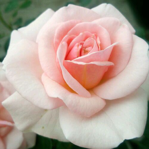 淡いサーモンピンクで、りんごの香りがする中香だが、花付きは良く房咲き。光沢葉で花を一層盛り上げる。