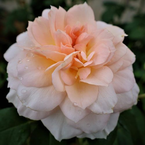 オレンジがほのかにかかったクリームピンクで葉の光沢が人目を惹き付ける。枝は良く伸び太いシュートが発生する。