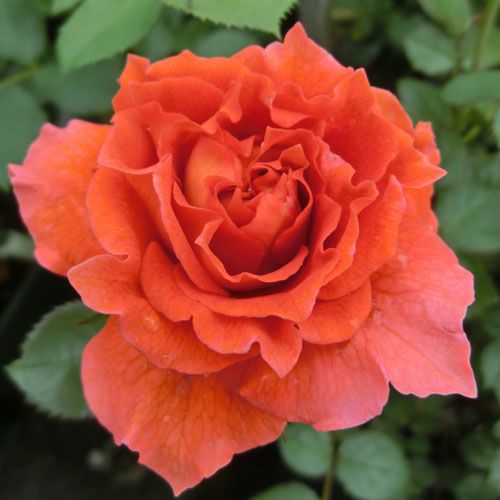 内弁オレンジで、外弁クリーム色の中輪。切り花にも可能。光沢のある濃い緑の葉。