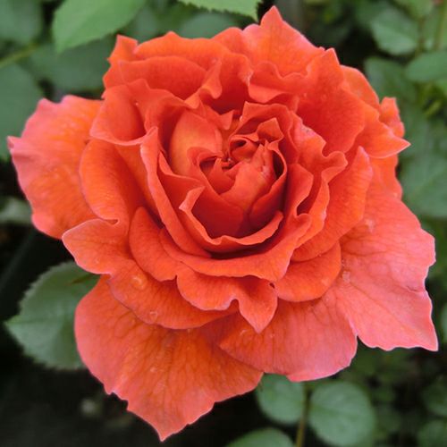 内弁オレンジで、外弁クリーム色の中輪。切り花にも可能。光沢のある濃い緑の葉。