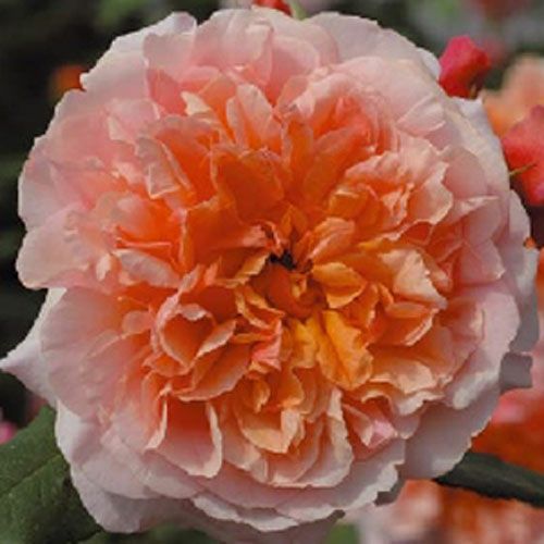 アプリコットが中心で外弁がピンクがかかる。大輪の見事な花を咲かせる。病気にはとても強い。リンゴの香りがとても強く漂う