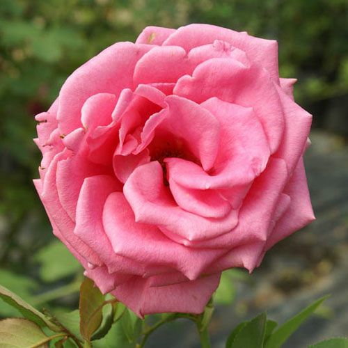 濃いピンクで、香りがとても自慢で花園のような至福の演出ができる。少しうつむき加減に花が咲く。