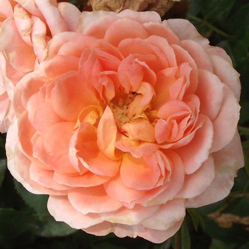 内側は優しいアプリコット、外側は薄ピンク色の花弁。耐病性で日陰でもよく育つ。