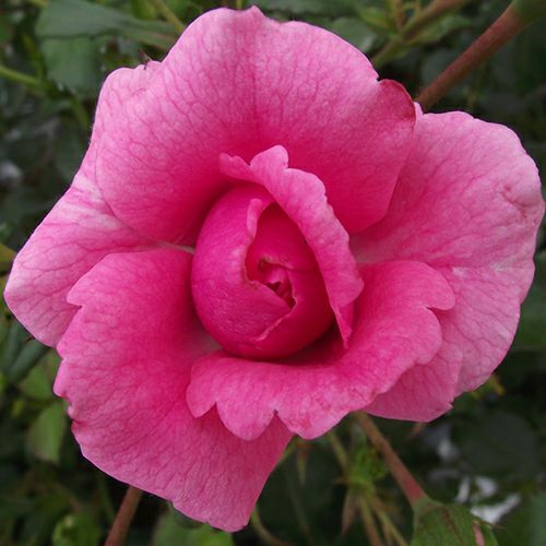 ピンクの多花性。光沢のある深緑の葉。微香ながらもバラ特有の甘い香りを持つ。