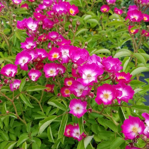 紫色の花色で中心が白。房咲き性がとても強く次々と花が咲き、開花時期がとても長い。時として太いシュートの発生が見られる。