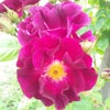 ダークパープルの色合いがとても神秘的。花芯の白と雄しべと雌しべの黄が目を惹きつける。スパイシーな香りを漂わせ繰り返し咲き続ける。