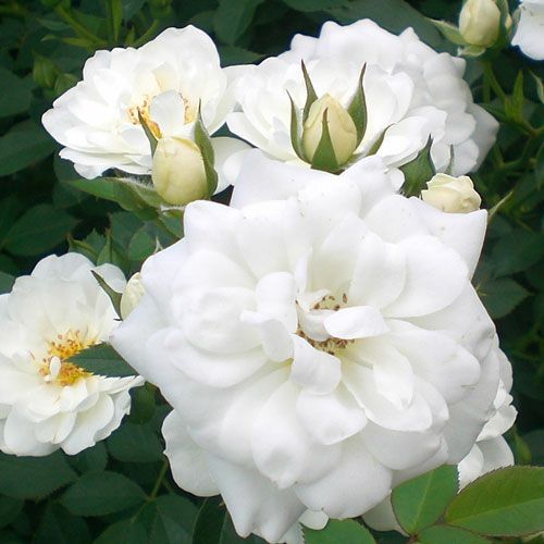 可愛らしい純白。多花性で一面に雪が降ったかのようになる。病気にも強く庭の演出には必須。