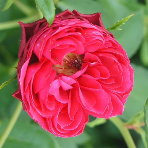 緋赤の中大輪です。樹勢がとても強くよく伸びる。枝が剛直になりやすい。