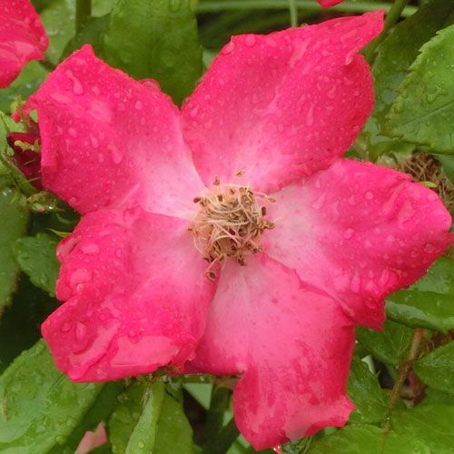 明るめのローズピンクに中心が白。人目を惹きつける色合いで房咲き性が強い。病気にも強く大変育てやすい。