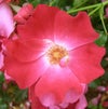 中心が白い赤の大輪。花弁数5枚ほどの一重咲きで房咲き性があり花保ちが良い。耐病性もあるので初心者にも向く。