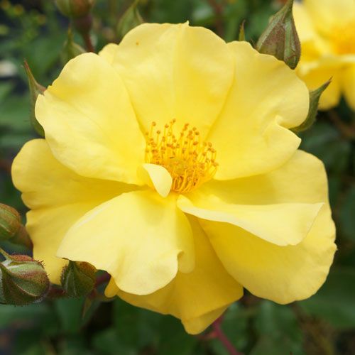 純黄の目の覚めるような色合い。多花性でとても花付きが良く1年中楽しめて繰り返し咲く。