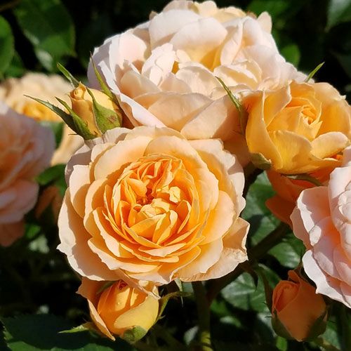 内側は優しいアプリコット、外側は薄ピンク色の花弁。耐病性で日陰でもよく育つ。