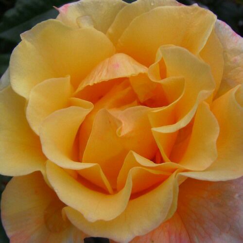 大輪の黄色いつるバラだが弁先に赤みを帯びる。葉に光沢があるのでバランスがよく目に映える。病気に強く初心者に向く。