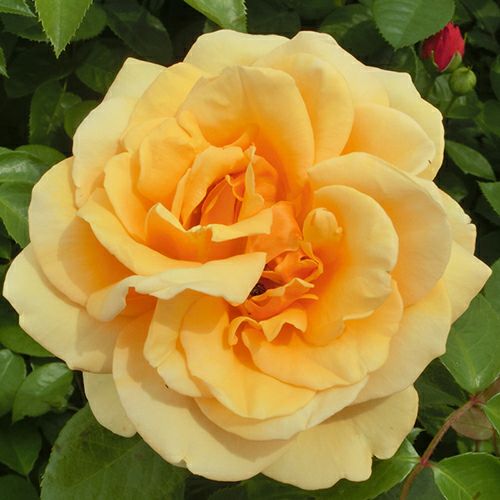 オレンジ黄で咲くにつれて弁先に赤みを帯びる。スパイシーの強い香水の香り。葉は濃い緑。壁・フェンスで育てることができる。