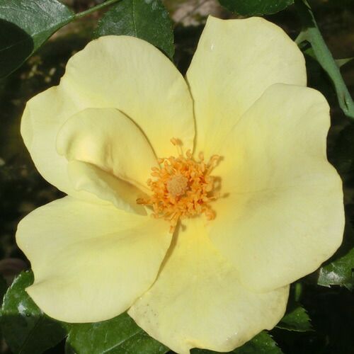品種名:アップルジャック Apple Jack系統:半つる性 シュラブローズ 樹高:0.6~0.8m形状:半つる性棘:少ない花期:四季咲き花色:黄花弁数:約10花径:約5cm咲き方:丸弁平咲き香り:微香作出国:アイルランド作出年:2009作出者:David Kenny