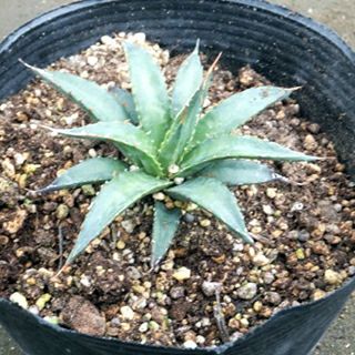 アガベ・ホリダ (ぺロテンシス)ダークグリーンの葉と茶色の棘が美しく、トゲは次第に白色に変わります。耐寒性にも優れ、地植えで大きく育てることも可能です