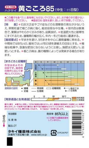 他の画像を見る 白菜 種 【 黄ごころ85 】 種子 L5千粒 ¥ 13,530 税込 【 ガーデニング 家庭菜園 】種 苗 苗木 園芸用品 農業用 資材 菜園くらぶ カートに入れる お気に入りに登録する