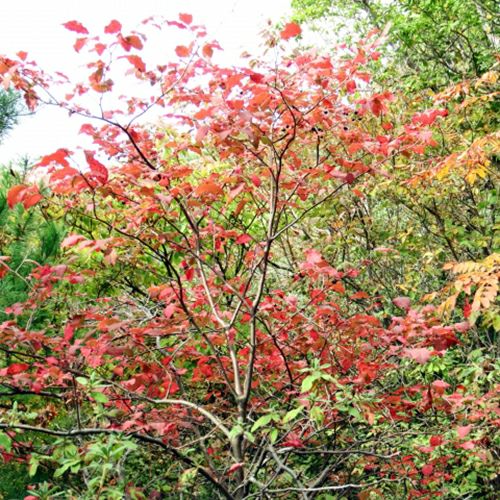 夏の時季からハゼノキのように美しく紅葉する木。
